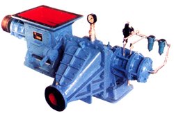 M型螺旋泵是为输送粉粒状物料而设计的,属于中、低压气力输送设备。按照螺旋轴直径分规格从150mm到350mm,螺旋泵主要由螺旋轴、进料箱、套筒、混合箱、卸料箱、轴承座、气密封座、底座、传动部件等组成。需要输送的物料进入进料箱后,螺旋轴将物料通过套筒。挤压、推至混合箱中,混合箱侧面喷出的压缩气流使物料流态化并沿管道输送到卸料点。