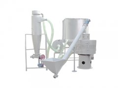 微细粉物料经进料斗流入进料口,立即扩散并与空气混合成雾状,经旋转风轮的作用,呈旋风状喷射过网,在引风机的作用下,气体与细粉全部进入沉降室,成品细粉沉降后由下部排出,带有少量粉尘的气体进入除尘布袋,经净化后排出袋外。颗粒直径大于网孔的物料不能过网,落入筛盘内由排渣口排出机外。