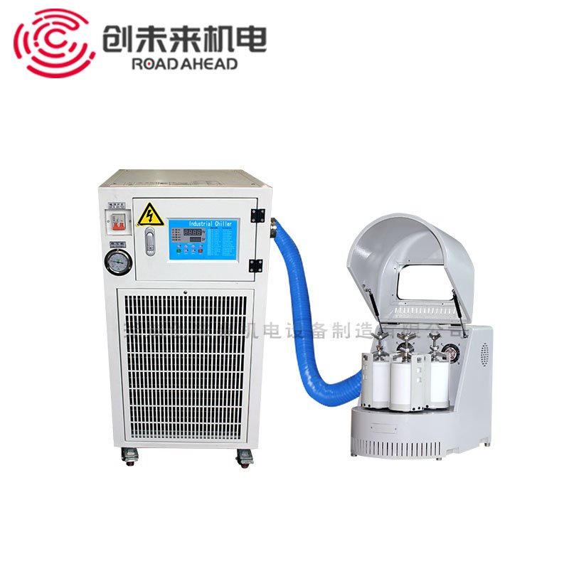 低温行星球磨机是行星球磨机和制冷装置组合设备,大部分物料在高速研磨过程中由于摩擦或存在放热反应等因素会使物料升温,可能导致物料物理化学性能的改变,产生负面研磨效果。低温行星球磨机主要应用于需要严格控制温度的物料研磨工艺。