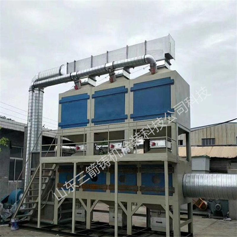 该装置的主要结构由净化装置主机、引风机和控制系统组成。催化燃烧净化装置包括:除尘器、换热器、预热器、催化燃烧室。
