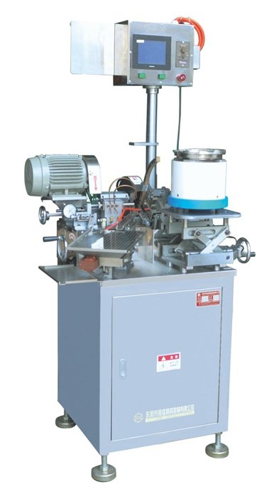 本機採用振動盤自動進料,道軌出有安裝感應裝置,當滿料時,振動盤自動停止,無料時自動振動,能有效整合機器;