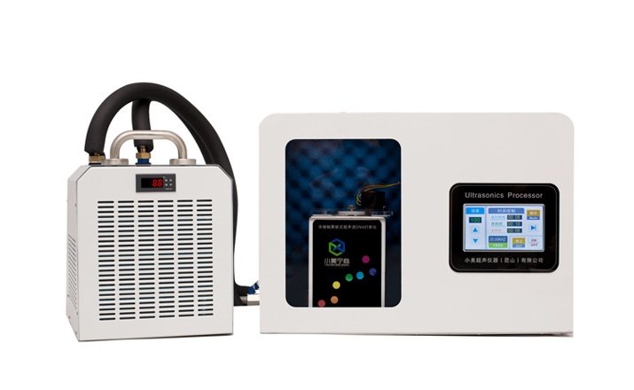 超声功率/时间调节及7寸液晶触控屏主机、超声水槽与抗噪音上盖、适配器旋转上盖、离心管紧固下盖、0.5-10ml 多种适配器及便携式冷却循环机。