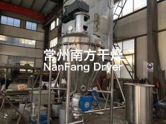 本机由加热锥体设有加热夹套,热源为热水、导热油或低压蒸汽,从而使锥体内壁保持一定的的温度。变频调速电机经平行斜齿轮减速机,驱动单螺带搅拌器旋转,带动物料沿锥型筒旋转并自下而上提升,物料到达**点后由重力和惯性作用,自动流向旋涡中心回到锥型筒体底部,整个过程使物料在锥型筒体内强制加热,相对对流、掺混,热量在物料中相互扩散,使物料作全方位的不规则往复运动,完成物料同单螺带和筒壁表面进行高频率传热交换,在短时间内达到加热干燥的效果。从而使物料内部水份不断蒸发,在真空泵的作用下,水蒸汽由真空泵引出,如须回收液体可加冷凝器、回收液储罐回收。干燥完成后,打开下部的出料阀出料。