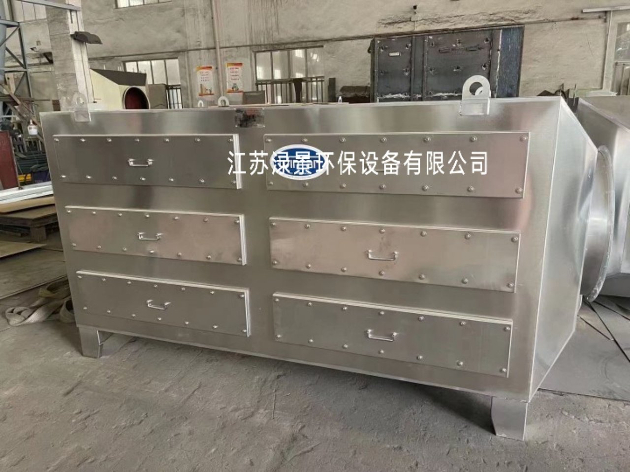 活性炭除味箱又名活性炭过滤器,其主要应用于有机 废气的处理,活性炭具有很细小的孔——毛细管,并有超强的吸附能力,活性炭表面积很大且能与气体充分接触并被毛细管所吸附。利用活性炭吸附作用除去异味,从而达到净化空气的效果。活性炭箱主要是吸附器,内含穿孔板、活性炭吸附层等部件。本装置采用不锈钢板制作而成。(亦可采用A3碳钢、镀锌钢板、不锈钢等其他材质)本装置具有节省动力。操作维护方便等优点:本装置适用于家具、木业、五金建材、医药化工等行业的有机废气处理。