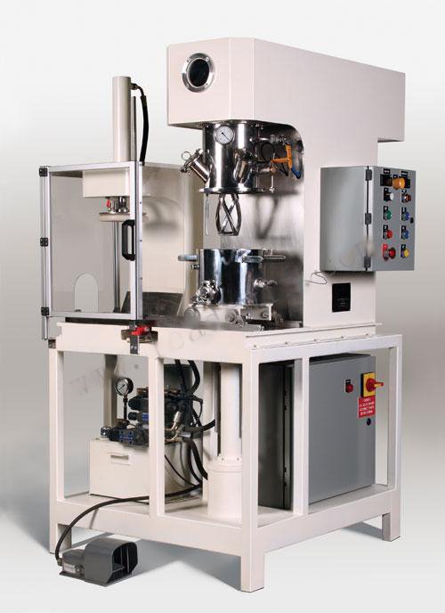 双行星混合机的搅拌桨叶,在公转的同时也自转,使罐体内物料上下及四周循环运动,从而可在很短时间内达到混合(混炼)效果。罐体内壁为大型立车精加工,再经大型抛光机自动抛光,确保行星箱上的活动刮刀在旋转时,把罐体内壁上的物料完全刮掉。该机特别适合从粉体到高黏度、高密度的物料溶解、混合、混炼、反应工艺。广泛应用于电池、有机硅胶、油墨、染料、粘胶剂、高粘度涂料等化工产品。
