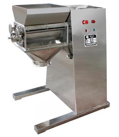 摇摆式颗粒机适用于制药、食品、化工等行业将潮湿的粉料研制成所需颗粒,也可将块状干料粉碎成所需颗粒。其通过机械传动使滚筒往复摆动,将物料从筛网中挤出制成颗粒,只要更换不同目数的筛网就制成粗细不同的颗粒,筛网、滚筒装拆简便,整机外围及与物料接触全采用不锈钢材料,更易于清洁和保养,适用于制药、化工、食品、科研单位、实验室、医院、小型保健品厂小批量生产,是生产颗粒冲剂、片剂或胶囊必须设备。也可对一些条状及不规则状的易碎、易松散、较脆物料的打碎打散之用,作为磨粉的前道工序。