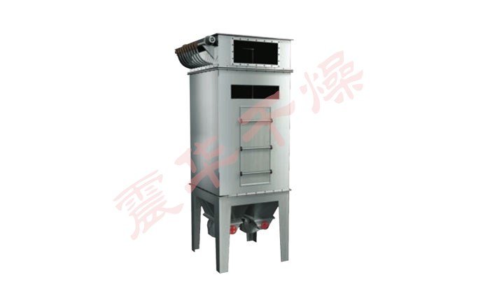 含尘气流从进气口进入下箱体后,部分沉降,轻微粉尘浮动时被滤袋阻留,净化空气通过滤袋,经管体进入上箱体,从出气口排出。积附在滤袋外璧的粉尘不断增加,当阻力在限定下(一般为80-120毫米水柱)的范围内,就要清除积附在滤袋外璧的粉尘,清灰是由控制仪定期顺序触发各控制阀,开启脉冲阀,使气包内的压缩空气由喷吹管孔喷出(一次风)通过管体诱导数倍于一次风的周围空气(二次风)进入滤袋,使滤袋在一瞬间急剧膨胀并伴随着气流的反向作用,被抖落的粉尘落入灰们经排灰阀排出机体。