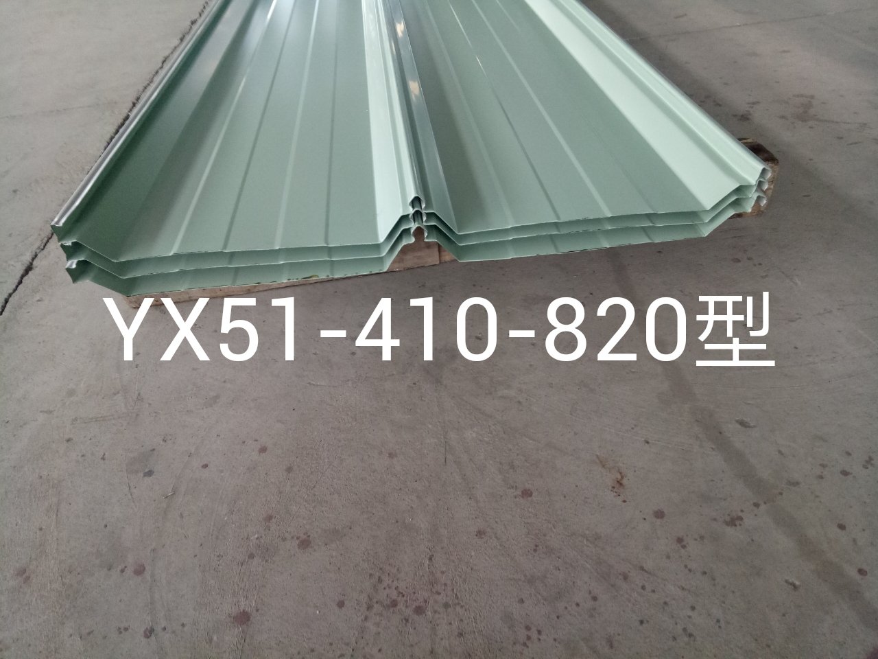 YX51-410-820彩钢瓦,HV51-410-820彩钢瓦 YX51-410-820彩钢瓦是在YX75-380-760屋面暗扣板基础上研发的一种利用率比较高的屋面暗扣板,也属于隐藏式屋面板,主要是靠一个中间支架和边支来固定在檩条上面,然后YX51-410-820彩钢瓦,HV51-410-820彩钢瓦直接扣合在支架上面,然后母口扣在公扣上面,经过咬边机严密的咬合,达到防水,防风作用。 YX51-410-820彩钢瓦特殊的W型设计,没有多余的瓦楞,5cm的凹槽,可以让夏天的暴风雨尽情的排泄,不用担心大暴雨在彩钢屋面上无法及时排出,形成倒灌,导致屋面结构漏水的问题。 HV51-410-820彩钢瓦特有的支架设计,防止大量的自攻钉裸露在外面,直接穿透彩钢瓦,破坏彩钢瓦的结构,形成腐蚀,同时也避免了自攻钉的防水塑料垫片裸露在外面,达到一定的时间的氧化和老化,会渗水和漏水的问题。 总之,YX51-410-820彩钢瓦是一种很好的屋面防水板,不用担心一两年后由于自攻钉直接固定彩钢瓦引起的漏水,渗水的问题,不用维修或更换,保持屋面彩钢瓦的美观和**防水机构!
