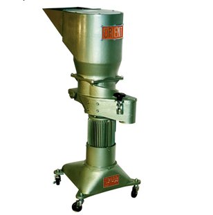 投入粉碎物时,首先台架车刀(2)导入粉碎物,通过与切削室的螺旋部交叉进行粗粉碎。所以无需引进粗粉碎机。