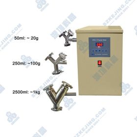 ● 容量:2.5 L (通常可放置1000g粉末颗粒) ● 可点击图片查看相关尺寸 ● 进料口采用2.5’’卡箍式接口,进出料方便快捷 ● 可选购50mL(20g)和250mL(100g)的V型筒(点击右图查看详细信息) |