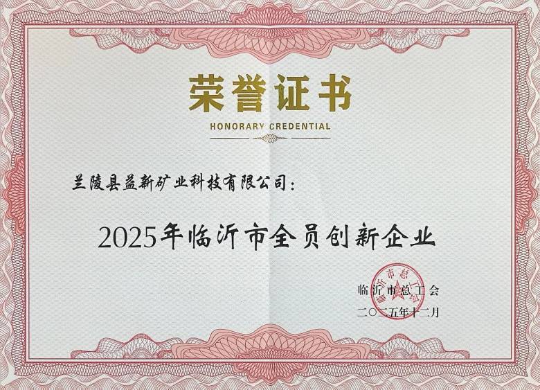 近日,兰陵县益新矿业科技有限公司再添重磅荣誉,被临沂市总工会正式授予2025年临沂市全员创新企业称号。这份荣誉是市级官方对公司创新发展实力、全员创新生态构建的高度认可,更是对全体益新人深耕创新、笃行实