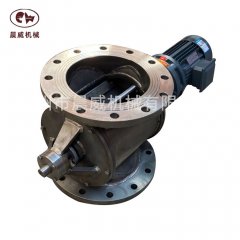电动旋转给料阀主要用于粉颗状物料的重力给料或气力输送系统中,采用电机作为驱动装置,阀体内装有叶轮,通过叶轮的旋转来均速,定量给料,另外设计精密的旋转阀也可用作关风机,或者叫锁气旋转阀.法兰连接,一般采用不锈钢与碳钢材质.