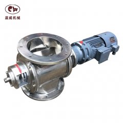 侧出料,适用于粉体,直接连接气力输送管线上,高压气体直接从阀体底部吹过,可防止粉体粘附于叶轮上,能提高输送效率。法兰连接,一般采用不锈钢与碳钢材质.