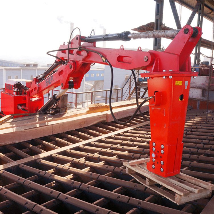 固定式液压破碎机械臂主要应用于各类矿山和采石场破碎机的入料口或格筛处,进行大块物料的二次破碎,固定式液压破碎机械臂也可用于冶炼厂对钢包和冶金炉进行打壳拆包等处理。固定式液压破碎机械臂主要安装于工业厂矿、井下、铸造冶金炉口等区域,用于对大块坚硬岩石、矿石破碎抓取以及钢包炉衬清渣拆除作业。