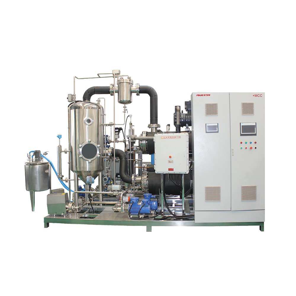 压缩机压缩的不是物料蒸汽,而是与物料进行热交换的制冷剂。完全避免安全隐患。本机组不改变原有蒸发工艺,具有完全可替代性。