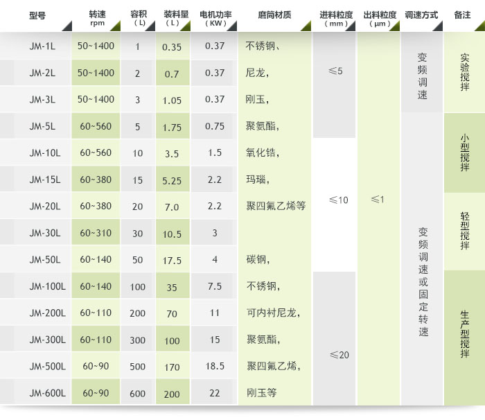 轻型搅拌磨主要由静置的内填小直径磨介的磨筒、搅拌装置和其他辅助装置(如:循环装置、冷却装置、定时、调速控制等)组成,研磨效率高,粉碎粒度小,能很 好的实现各种工艺参数要求,模拟生产中的各项指标,同时由于其小批量、低功耗、低价位的优点,是学校、研究单位、公司是进行粉碎工艺、新材料、涂料研究的 **设备。广泛应用于硅酸锆、氧化锆、氧化铝、陶瓷、化工、电子材料、磁性材料、造纸、涂料、非金属矿、新型材料、油漆、石墨、碳酸钙、制药等多种超细粉 体的生产领域。