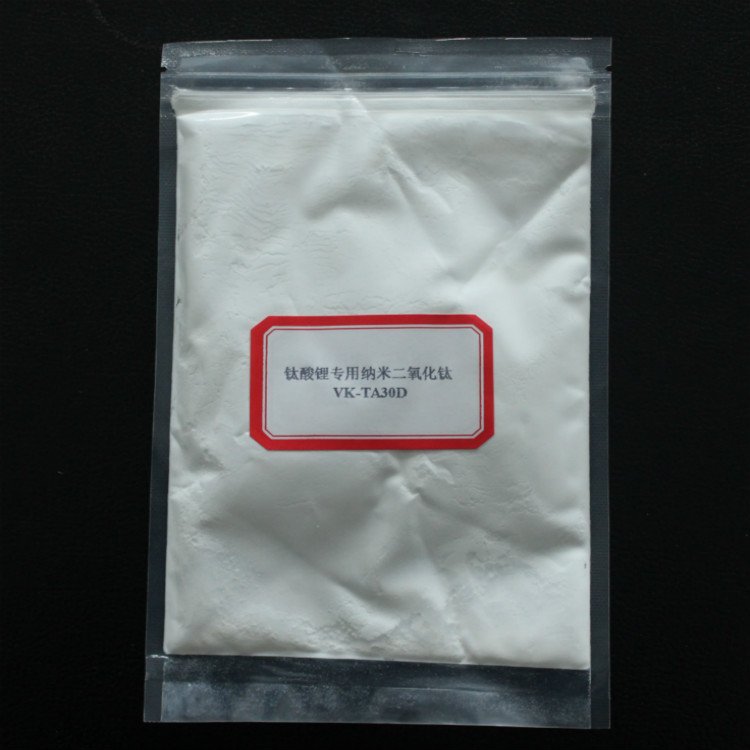 我司根据电化学的特殊要求,经过工艺制备出钛酸锂用纳米二氧化钛VK-TA30D,产品性能优异,适用于纳米钛酸锂电池材料的制备。