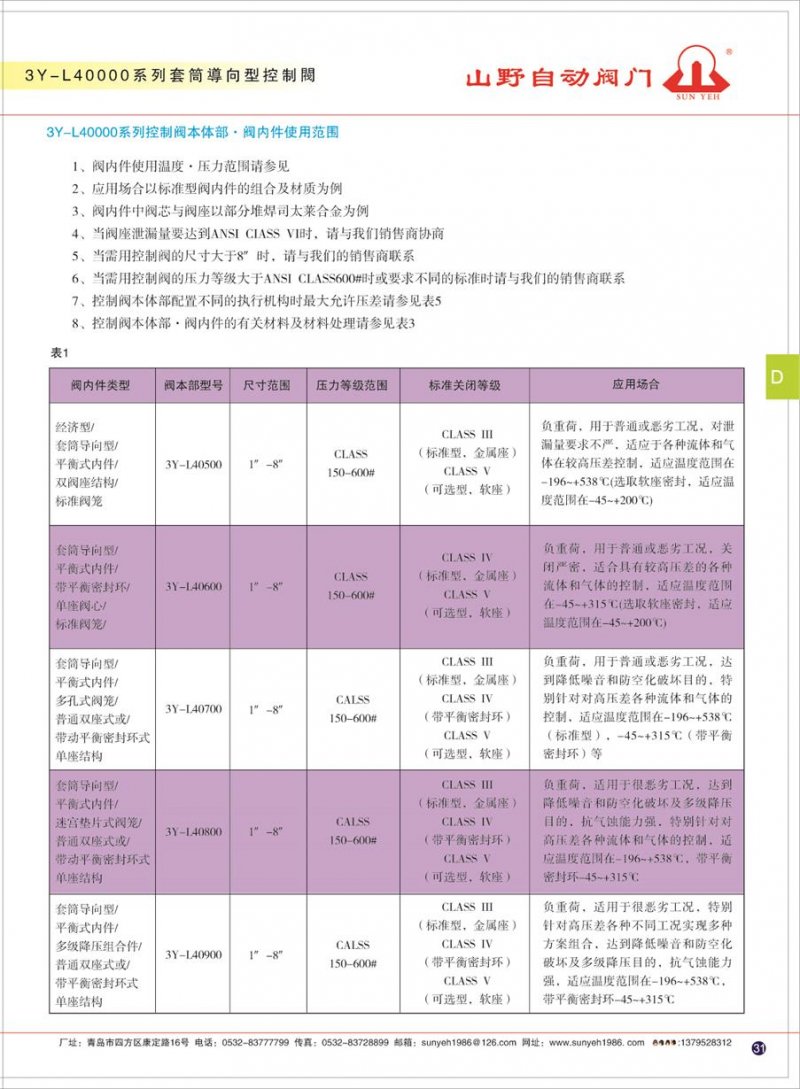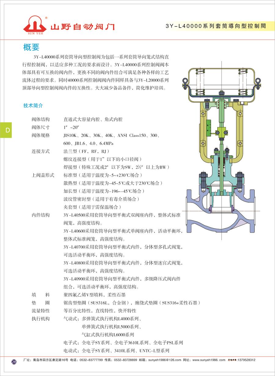 3Y-L40000系列套简导向型控制阀为包括一系列套简导向笼式结构直行程控制阀,以适应多种工况的要求而设计。3Y-L40000系列控制阀阀本体部具有可互换的阀内件。