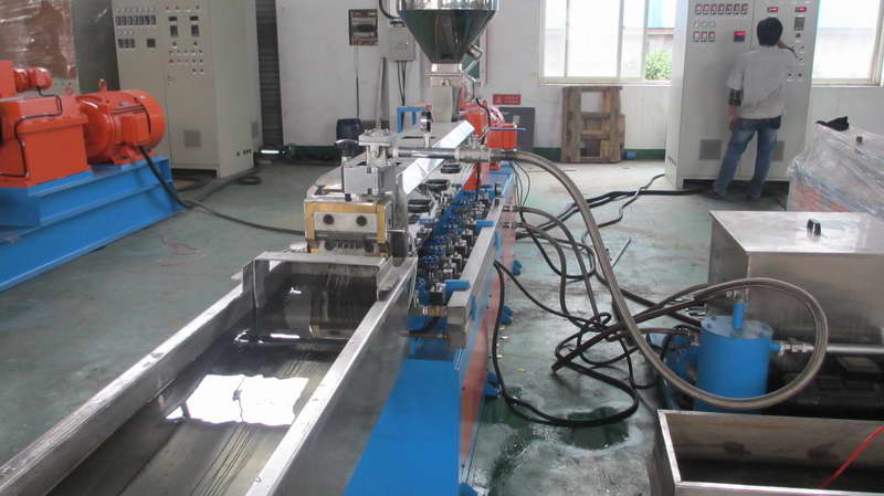 加压式喂料机-----单螺杆螺杆造粒机-------冷却水槽-------吹干机-------切粒机