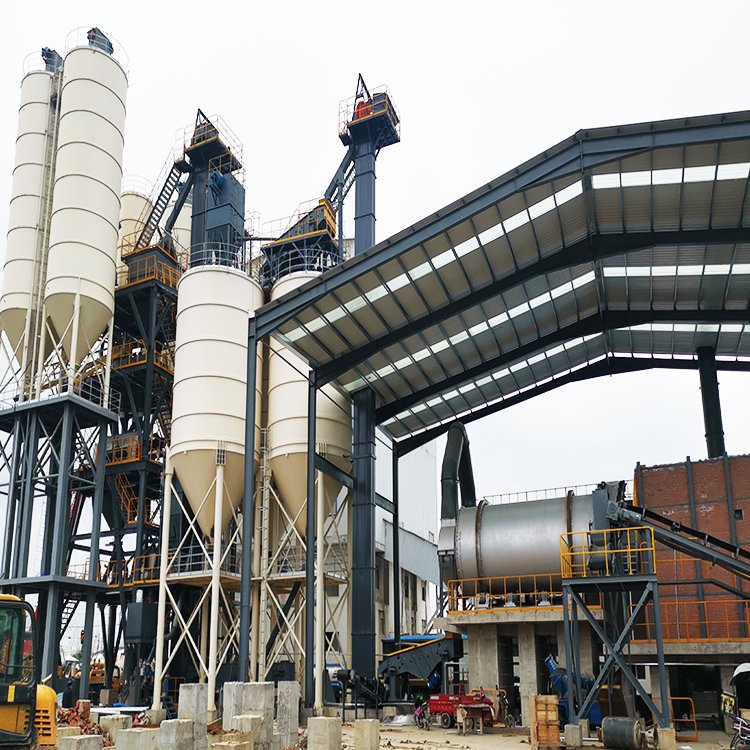湿砂由装载车装入湿砂进料斗,由湿砂进料斗下方的变频皮带机和转运皮带机均匀送入烘干机,除尘器将烘干的水蒸气,粉尘抽走,水蒸气由风机烟囱排出,粉尘落入集灰斗,由螺旋输送机、输送至干砂提升机,提入干砂存储仓,烘干后的干砂经筛分机去除大颗粒后通过耐磨溜管送入斗式提升机,提升到搅拌楼上,储存在干砂缓存仓内,缓存仓的下方为砂计量称,然后通过蝶阀、螺旋输送机等将砂料、粉料、袋装添加剂等分别储存到相对应的仓内后,后面进入混合机内进行混合,混合完毕后,物料进入下方的成品储料仓后,通过分料器,将物料分配到快速散装机将成品的砂浆装入运输车进行销售。