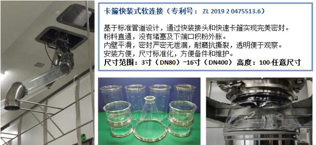 1、耀辰新材®卡箍快装式软连接密封性好吗?耀辰新材®卡箍快装式软连接(专利号:ZL 2019 2 0475513.6)被广泛应用于粉料或液体物料的管道或设备的连接,大量用户的使用和实验证明,其密封性能