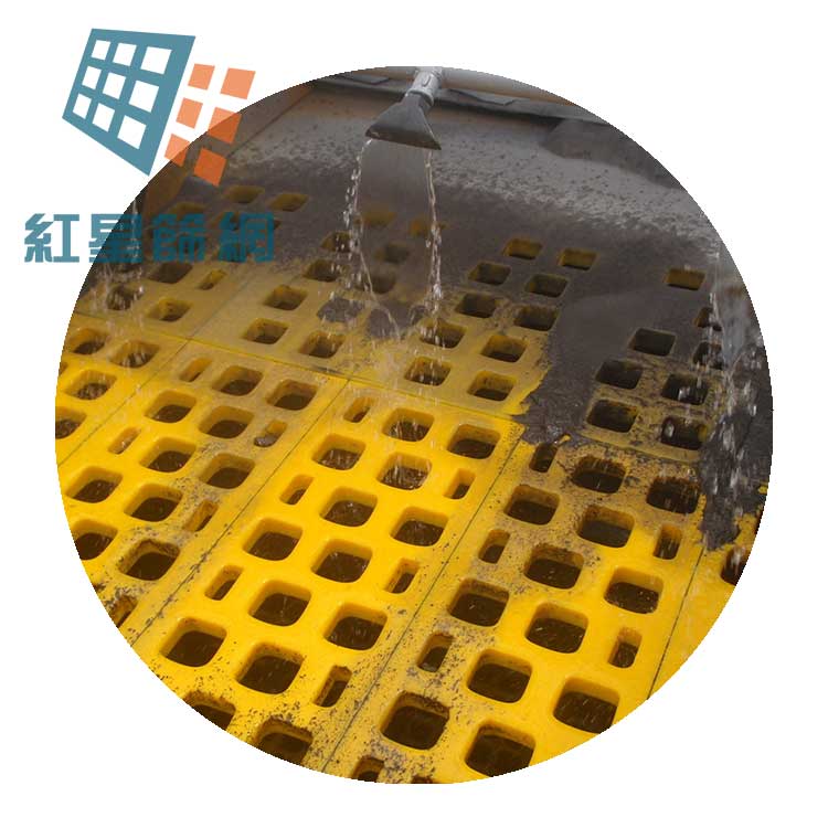4、耐湿性能好,可在水为介质的条件下工作,且在水、油等介质的情况下,聚氨酯与物料的摩擦系数降低,更利于透筛,提高筛分效率,并可避免潮湿微粒的粘附,同时因磨擦系数降低,磨损减少,使用寿命提高。
