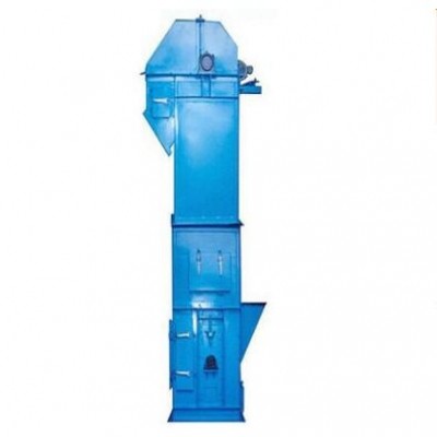 垂直斗式提升机是一种环链离心斗式提升机。电梯系统由运行部带传动链轮的上段、带张紧链轮的下段、中间壳体传动装置和止回制动装置组成。电梯的料斗是间歇布置的。料斗采用“淘料法”装载,离心进料法卸料。本吊卡适用于输送粉状、颗粒状、小块非研磨性、研磨性物料。由于电梯的牵引机构为环链,允许高温运输物料。