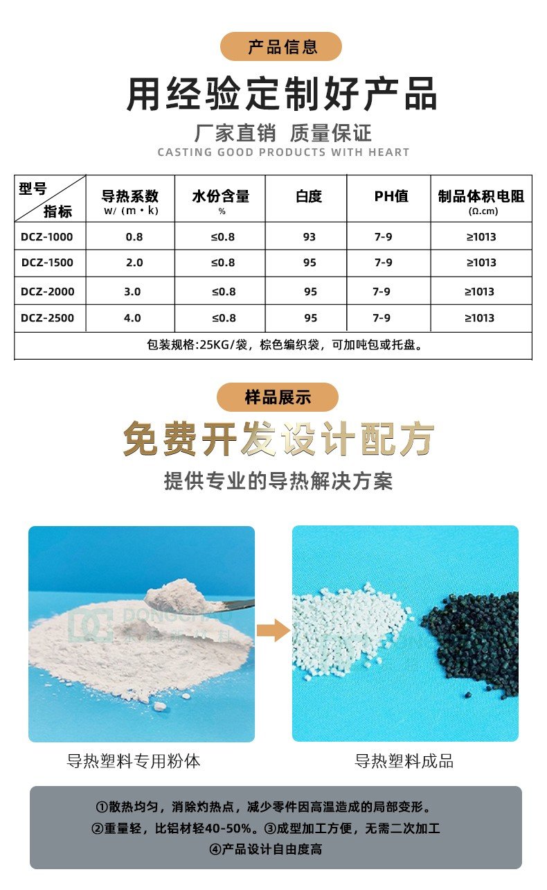 1、导热塑料对粉体白度要求较高,需保证白色工艺制件白璧无瑕。