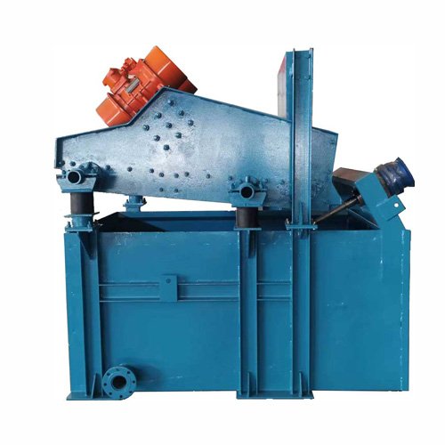 用高频振动筛将旋流器或泥浆泵输送过来的泥浆进行脱水筛分,高频筛下方有集水箱用于水的收集,集水箱可配有搅拌器,脱水后的筛上物料可送入皮带机或小车运走。