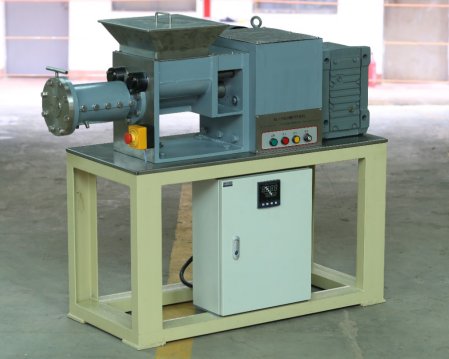 3 设备加工精度高,采用变距螺杆,能产生较高的挤出压力,提高产品强度,适合于难挤出物料的挤出操作。标准型设备可实现1mm—10mm直径物料的连续生产。