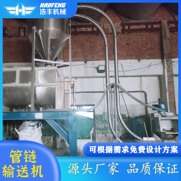 管链输送机是一种粉体输送机,是输送粉状、小颗粒状及小块状等散状物料的连续输送设备,可以水平、倾斜和垂直组合输送。用于各种粉末、小粒、小球和易碎材料的运输。
