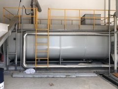 泥圆盘干燥机作为一种污泥间接加热干化设备在几十年前就已经应用于化学工业,食品工业以及饲料工业。现在已经发展为相当成熟的干化工艺,在国际市场上占有率也非常高。污泥焚烧的共同特点是以回收能源为目的。污泥的热值低,一般需要添加辅助燃料,所以应该设计辅助燃料少的流程,而流化床工艺就是其中之一。圆盘干燥机主体由一个圆筒形的外壳和一组中心贯穿的圆盘组成。圆盘组是中空的,热介质从这里流过,把热量通过圆盘间接传输给污泥。污泥在圆盘与外壳之间通过,接受圆盘传递的热,蒸发水份,污泥水份蒸发形成的水蒸气聚集在圆盘上方的穹顶里,被少量的通风带出干化机。圆盘干燥机的圆盘有两个作用:一是它给污泥提供足够大的换热面积,二是它缓慢转动,它上面的小推进器推动污泥向指定的方向流动并起到很好的搅拌作用。圆盘干化机利用每个圆盘的双面传热,可以在小空间里提供很大的换热面积,这使得圆盘干燥机体型紧凑。圆盘的转动变频可调,转速约为5r/min,因此磨损很小。圆盘盘面与轴是垂直的,所以它本身的转动不影响污泥的流向,圆盘干燥机的圆盘边缘有一些小桨叶,这些小桨叶有一定的倾角,既帮助污泥定向流动,双起到搅拌的作用。外壳是不动的,它容纳污泥和污泥蒸发产生的水蒸汽。外壳内壁有固定的刮刀。刮刀很长,伸到圆盘之间的空隙,防止有大块污泥固结在盘片上。与圆盘上的桨叶类似,固定刮刀也起到搅拌的作用。