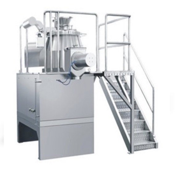 GHL系列湿法制粒机,作为制药行业内固体制剂生产的重要工艺设备,对原辅料实现混合造粒,或者制作软材用。采用PLC自动控制系统,设备与工艺符合当前GMP与国家药典要求,GHL系列高速混合制粒机是由粉体物料与粘合剂在圆筒形容器中由底部混合浆充分混合成湿润软材,然后由侧置的高速粉碎桨切割成均匀的湿颗粒。