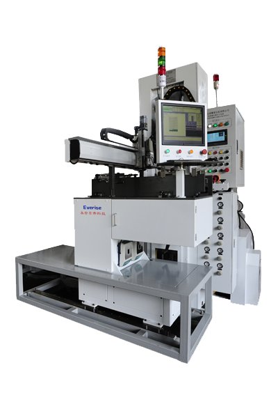 该压机主要用于硬质合金、粉末冶金及相关行业的高端粉末制品自动干压成形,压机配备快速、灵活、精准的三轴、四轴、六轴取料机械手,采取称重检测反馈系统,它由制品拾取机械手、毛刺清洁器、称重检测电子称、料盘传输线组成,压机压出制品后,由机械手拾取放入毛刺清洁器清洁毛刺,然后放于称重检测电子称上,根据检测数据值与允差范围值进行比较,合格品由机械手拾取放入合格品料盘收集区,不合格品丢入废料盒,根据设定称重次数可对多个产品进行称重检测,超出产品单重设定范围时由程序指令发出报警信号,通知操作人员对充填深度参数进行微量调整,由于诸多先进技术在本机上的应用,使得我们设备能够满足高端制品的成型需求。