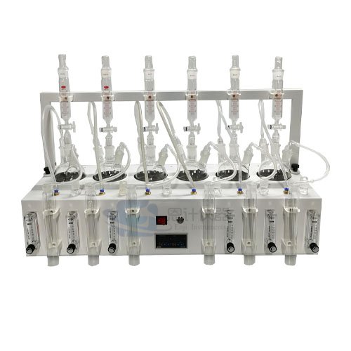 垂直加酸、氮气吹脱、酸化吸收一体化设计,盐酸入口、气体进口、样品出口三口一体且相互独立,操作互不干扰。
