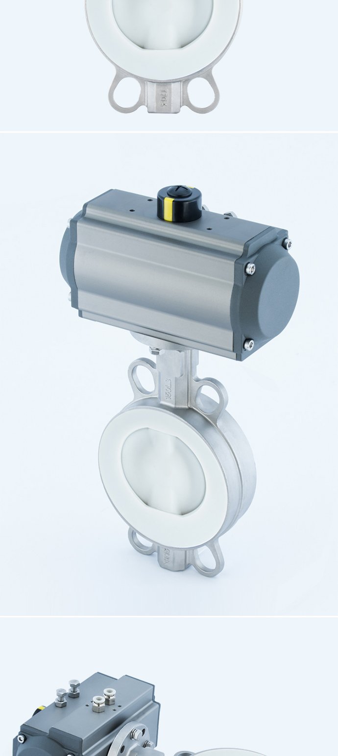 耐腐蚀气动衬氟蝶阀是由气动执行器和法兰或对夹式衬氟蝶阀组成,蝶阀阀座与密封面衬有氟塑料,具有零泄露、寿命长及超强的耐腐蚀性和耐磨性等优点。气动衬氟蝶阀根据不同工况条件选择不同的衬里阀体,分为全衬氟蝶阀和半衬氟蝶阀。气动衬氟蝶阀具有严密的密封性能,且不仅有普通蝶阀的机械强度,又能发挥PTFE的耐腐蚀、耐酸碱的化学特性,在一般常规条件下的工况中,比不锈钢阀体的蝶阀具有更高的性价比
