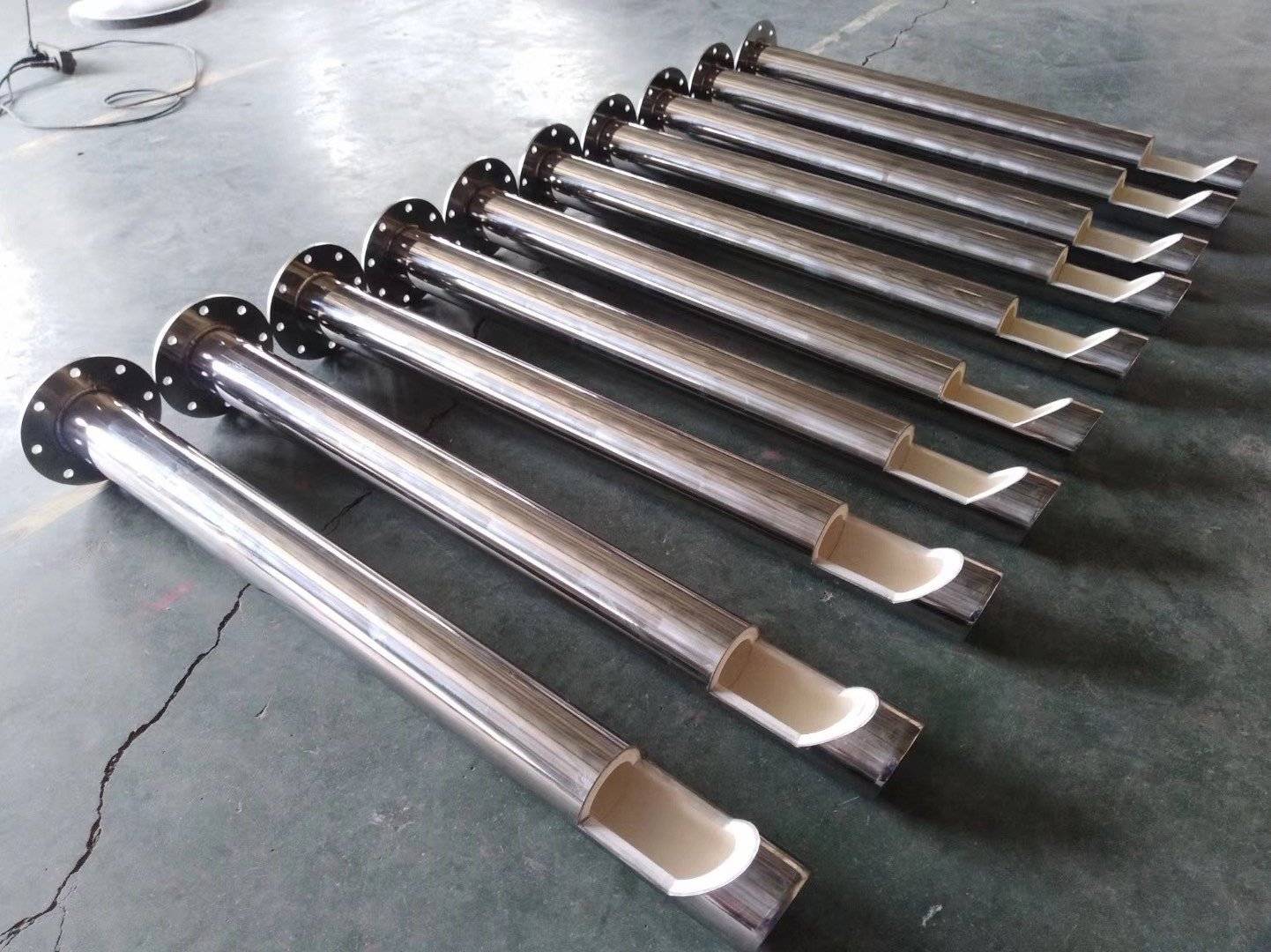 整体陶瓷增压器由钢管层、粘胶填充层、陶瓷层组合而成,尺寸选型与陶瓷直管一致,连接法兰可非标定制,内插部分的表面可喷涂氧化铝涂层、四氟涂层、特氟龙涂层。后端可整体用陶瓷管,解决钢件磨损问题