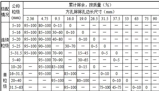 · 1、颗粒级配碎石或卵石的颗粒级配应符合下表要求: 混凝土用石应采用连续粒级。单粒级宜组合成满足要求的连续粒级,也可与连续粒级混合使用,以改善其级配或配成较大粒度的连