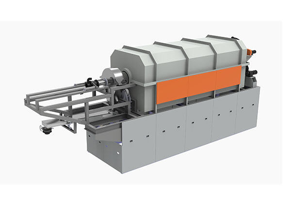 物料由料仓通过进料组件进入加热段内,加热段炉管通过传动电机带动旋转,物料在炉管中加热至工艺温度后,由升降组件倾斜炉体便于物料排出,出料组件起到降温及均匀出料的作用,炉管内可根据客户需求通入不同的工艺气体,尾气中携带的细颗粒物料将由过滤系统分离并收集。
