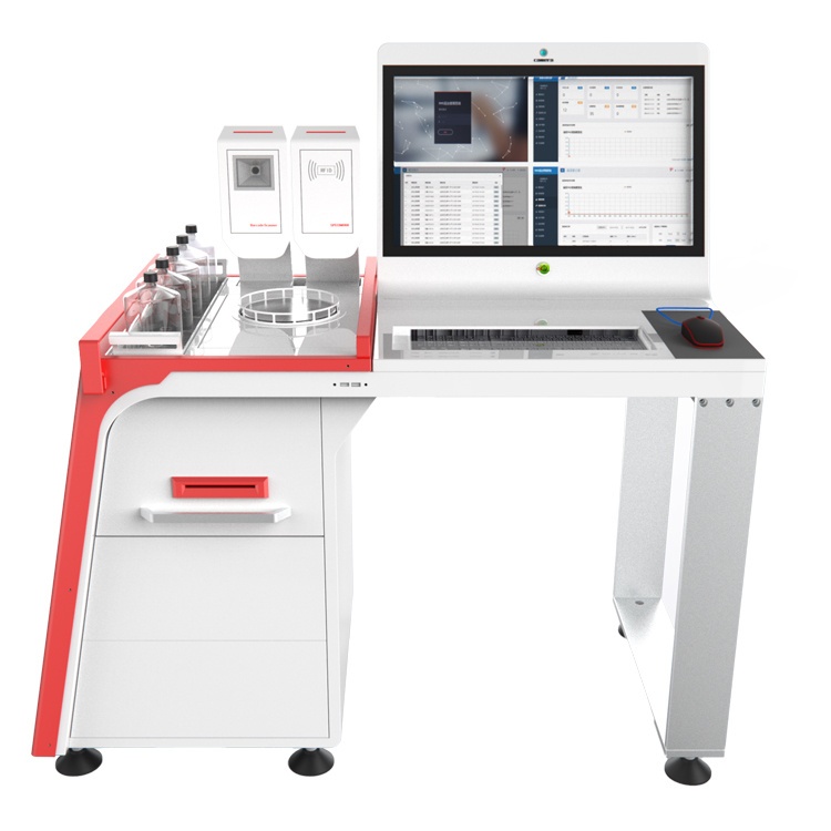 1. 配备24英寸可触摸显示屏,并集成RFID识别器(一维条码识别器)和称重天平,实现试剂剩余质量自动采集并录入系统的功能,通过组网实现数据集中储存、管理,形成一体化操作平台;