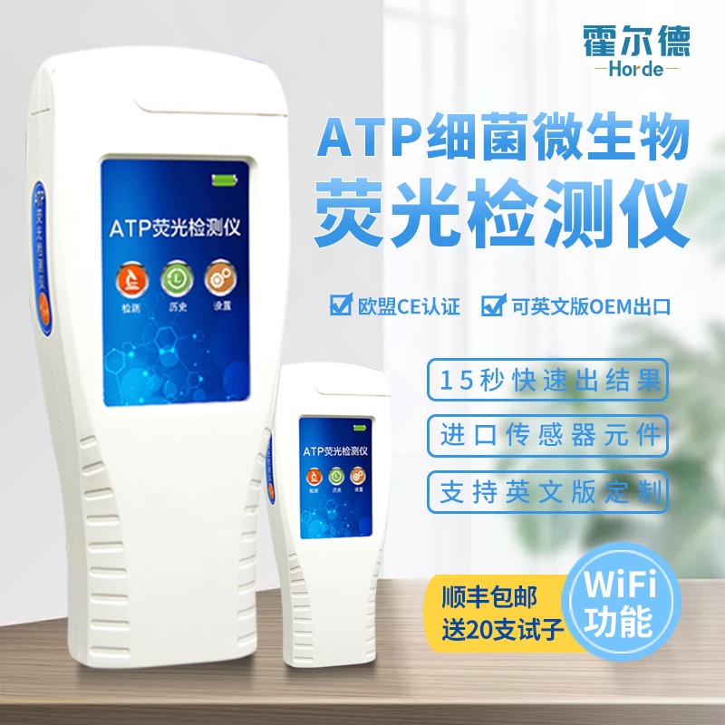 ATP生物荧光检测仪是我司新研发上市的升级产品,大屏幕触摸显示屏,代替传统按键。操作采用生物化学反应方法检测ATP含量,ATP荧光检测仪基于萤火虫发光原理,ATP快速杀菌效果检测方法是基于ATP(adenosine triphosphate)三膦酸酰苷检测原理,利用“荧光素酶—荧光素体系”快速检测三磷酸腺苷(ATP)。