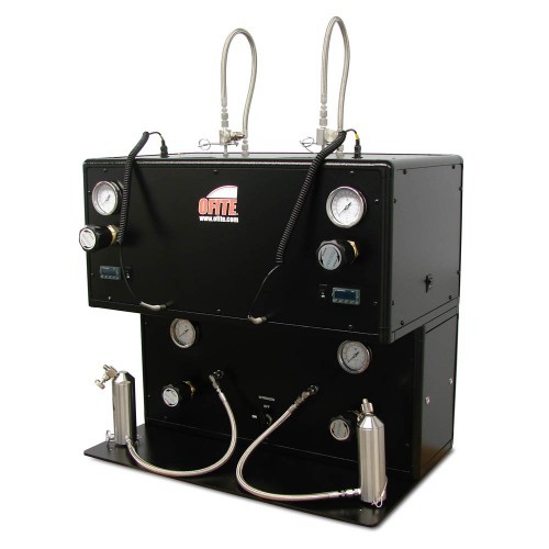 OFITE全新的二联高温高压滤失仪特别适合大体积量的实验室测试用。该仪器由两个各500ml的高温高压滤失罐组成,每个罐体带独立的电子温控器和两个独立的调压阀(主压和回压)。因此,各自罐体可独立的加热和加压,仍只需一个压力源。