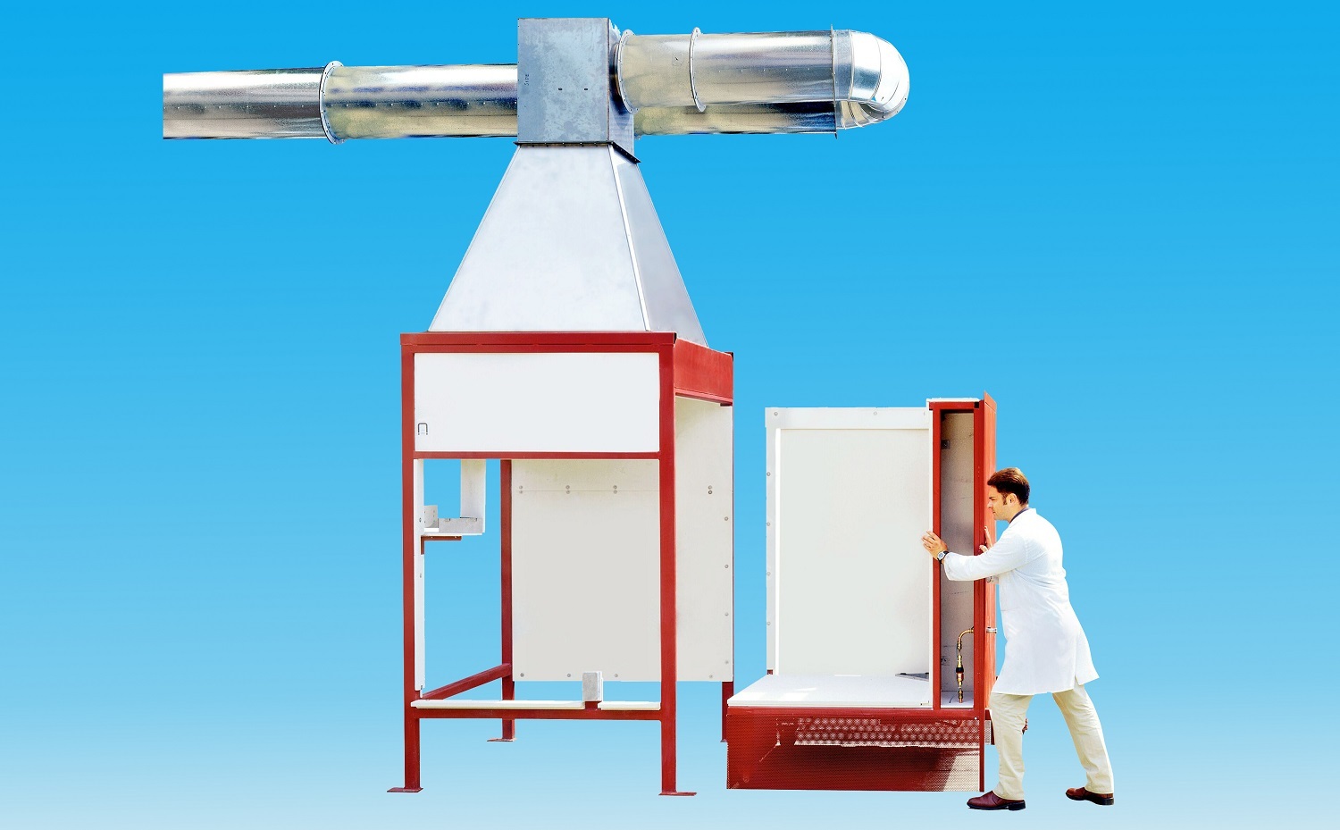 样品放在小车的角落里,小车及样品固定在排气系统下方。样品燃烧反应均可随时可见且可控制。通过观察,可衡量散热量及烟雾释放速率同时评估物理特性。热释放速率,防火增长率指数(FIGRA),烟雾总产量,烟雾增长率指数(SMOGRA),以及横向火焰蔓延指数,这些均为在欧洲分级标准中使用的参数。
