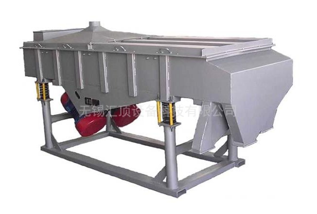 直线振动筛具有稳定可靠、消耗少、噪音低、寿命长、振型稳、筛分效率高等优点。主要用于磨料磨具原料、化工、塑料、医药、树脂粉、陶瓷原料、冶金、建材、粮食、化肥等行业中的干式粉状、细颗粒状或细微粉物料的筛分,直线振动筛采用双振动电机驱动,当两台振动电机做同步、反击旋转时,其偏心块所产生的激振力在平行于电机轴线的方向相互抵消,在垂直于电机轴的方向叠为一合力,因此筛机的运动轨迹为一直线。其两电机轴相对筛面一倾角,在激振力和物料自重力的合力作用下,物料在筛面上被抛起跳跃式向前作直线运动,从而达到对物料进行筛选和分级的目的。可用于流水线中实现自动化作业。