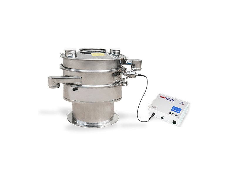 超声波振动筛是旋振筛的一种衍生产品,将超声波控制器与振动筛有机结合在一起,在旋振筛的基础上,在筛网上面叠加一个高频率低振幅的超声振动波,超微细粉体接受巨大的超声加速度,使筛面上的物料始终保持悬浮状态,从而抑制粘附、摩擦、平降、楔入等堵网因素,从而解决了强吸附性、易团聚、高静电、高精细、高密度、轻比重等筛分难题,使超微细粉筛分不再成为难事,特别适合高品质、精细粉体的用户使用。超声波振动筛是一种物料在筛分过程中有效解决网孔堵塞的好解决方法,且简单实用。可广泛的应用于制药、冶金、化工、选矿、食品等要求精细筛分过滤的行业。