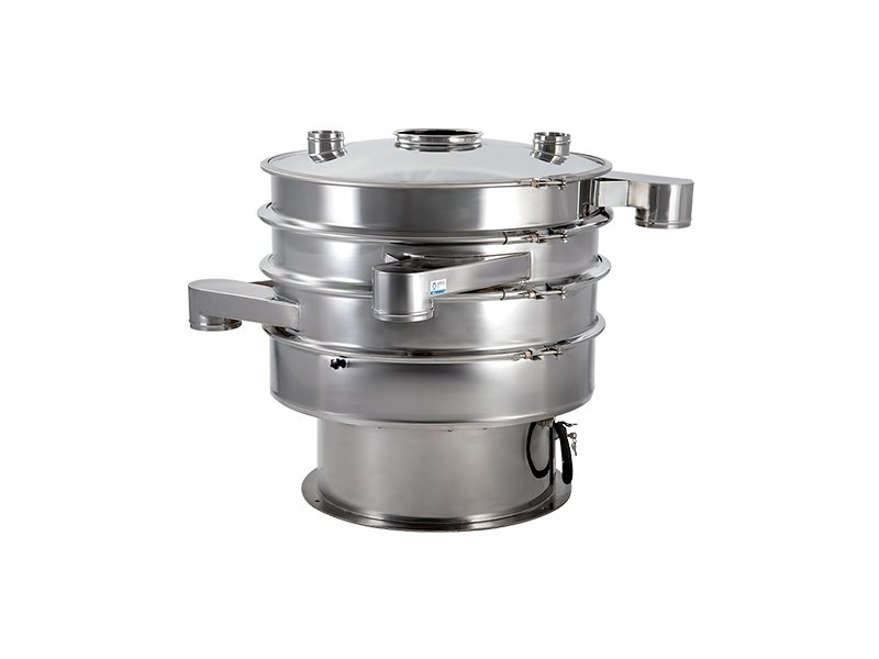 旋振筛对食品行业里的粉末,颗粒,浆液等类物料进行筛分,除杂,过滤时,都有着较好的效果,密封性也好,可减少粉末飞扬,浆液外流,不污染生产厂地.材质上,食品行业为特殊行业,接触物料宜选择不锈钢的304材质,如物料粘性较大,需使用清网装置,不宜使用橡胶球,应选择硅胶球,橡胶球污染物料,硅胶球不污染物料.