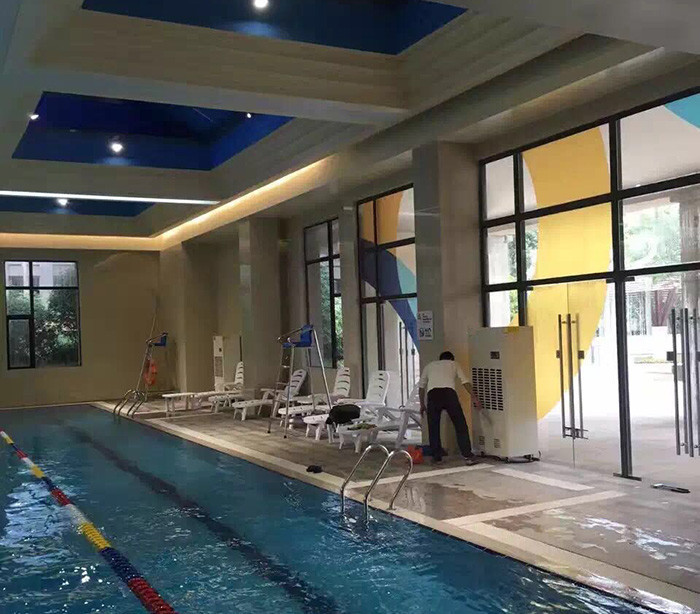 泳池专用除湿机 新闻资讯:众所周知,游泳是一项竞技比赛项目,也是广大公众喜欢的一种休闲健身运动;随着人民生活水平和品质的不断提高,越来越多的人喜欢到游泳馆去畅游一番;不过,很多人会发现有一些室内泳池普遍存在着以下的问题:①室温与水温相差悬殊 ②空气里充满难忍异味 ③天花板上布满了霉斑 ④甚至通风口也已经堵塞 ⑤走在室内还可能时不时的被冷凝水砸中脑袋 ⑥室内建筑上的金属结构已被腐蚀的表皮摇摇欲坠 ⑦进入更衣室更甚有散不去的汗臭味。