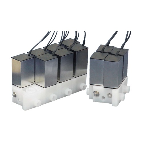 XTA成型多连体。把两个电磁阀单体作为基本单元,根据需要,可自由组合成**12连的多连体。通过将电磁阀设计成2列,可缩短多连体以及共通流路的长度,为仪器内部节省空间的同时也减少内部容积,不易发生交叉污染。多连体基板材质采用ETFE材质,具有良好的耐腐蚀性。接续方式有M6、1/4-28UNF等多种可选。广泛应用于水质环保等监测分析仪器。