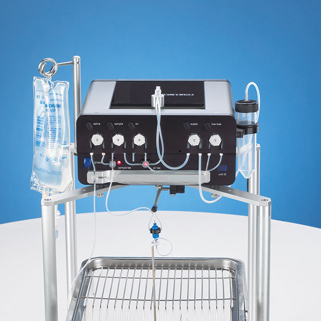 精密蠕动泵:能够准确、直接地传送血液,由于没有阀门的存在而使得血液通路的死体积很小。蠕动泵有几个特点优于注射泵: (1)路径短, *直接的路径减少血液被稀释混合, 较少的血液被浪费. (2)取样的循环时间短. (3)藉由更换蠕动管路尺寸的大小, 取样体积量不受限制.