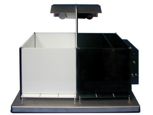 黑白箱又称明暗箱,是利用大小鼠具有趋暗避明的习性设计的装置,一半是暗室,一半是明室,中间有一小洞相连,可供动物穿过。动物给药后一定时间置于明箱中央,记录动物在一定时间内的穿箱次数及分布在明箱和暗箱的滞留时间。这个实验对记忆过程特别是记忆再现有较高的敏感度。
